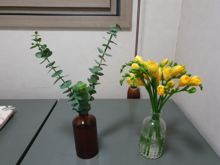 2023.12.10 프리지아. 유칼립투스. 겨울꽃.마약훠궈. 커피수혈.베스킨라빈스 하프갤런.소고기한상.당진엄마일상