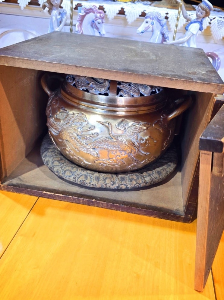 중국 명나라의 큰향로 브란즈의 디테일이 아주 대단한 향로이고 브란즈 무게도 대단해서 움직이기 아주 어...