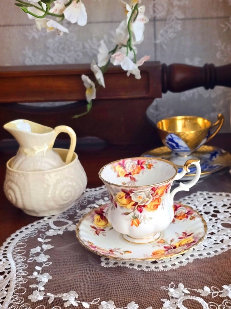 할인~ 로얄 알버트 클래식 로즈 레노라 데미잔 잔아래 수리~잘 되어 있음 가장자리 약 로쓰있음 지름/높이7...