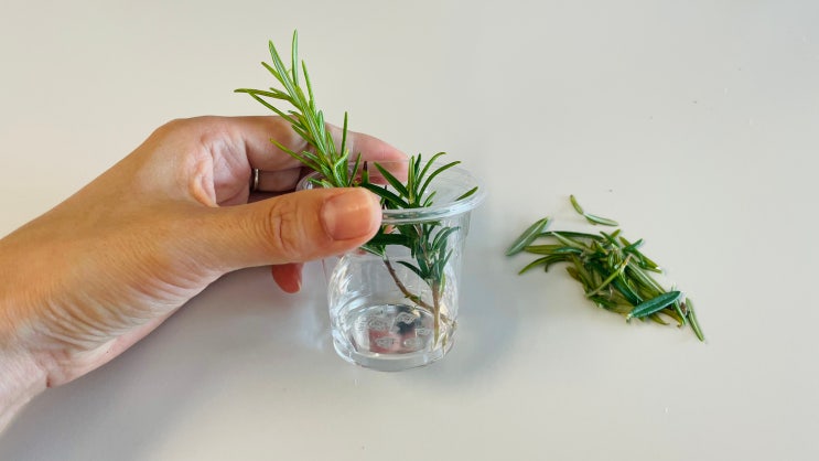 대략 한달전 동생에게 받은 로즈마리 삽수 둘. 토스카나와 골든더스트예요. 2024년 6월 24일 삽목을 준비하...