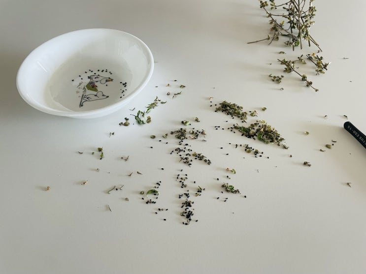 지난 7월 25일 잘라서 말려두었던 타이바질 씨앗을 채종하기로 합니다. 마르기 전에 씨앗을 채취하면 상할 ...