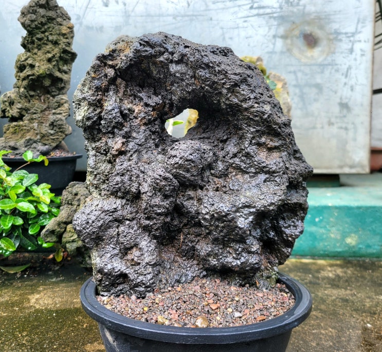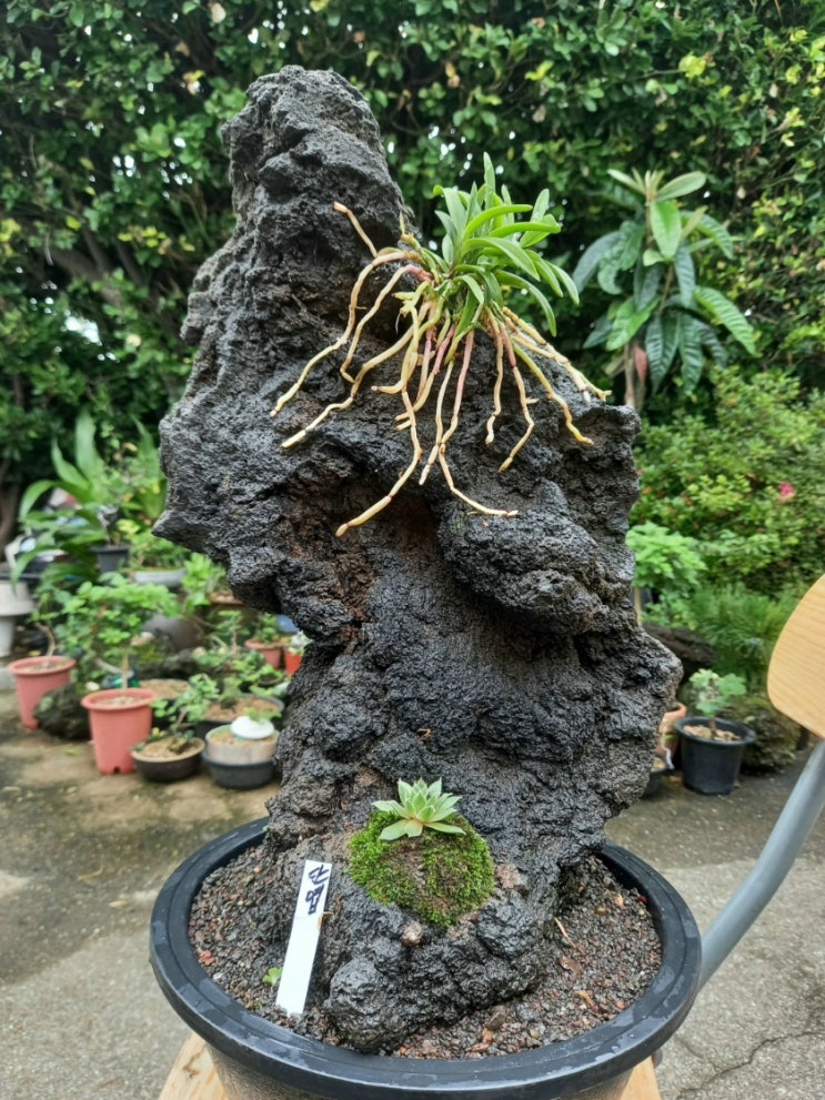 오늘 제주 장맛비가 잠시 소강한 틈을 타서 제주석에 풍란 석부작 한 점 작업제주석 사이즈 화분 높이...