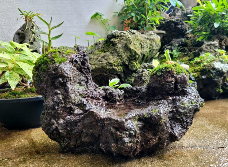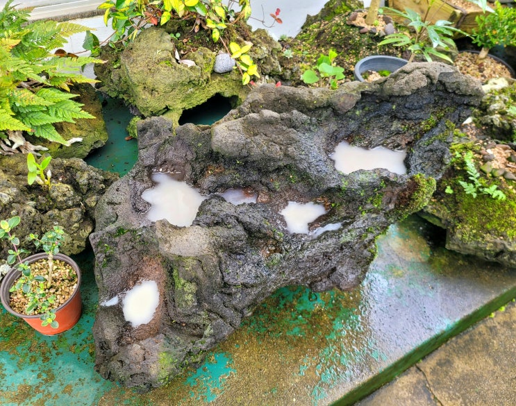 오늘 삽목묘 산반무늬목수국을 제주석에 올려봅니다. 제주석 사이즈 200×120 삽목묘 무늬수국을 올려놓고 ...