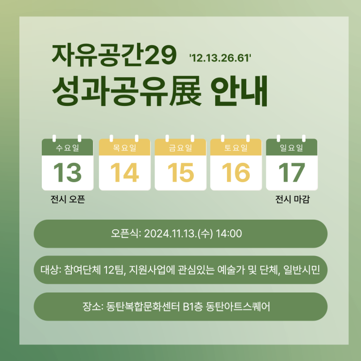 [자유공간29] 성과공유展"12.13.26.61."에 시민 여려분을 초대합니다!! 12 : 12개의 프로젝트 13...