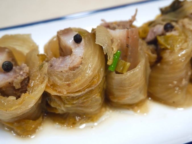 배추 짠지 삼겹말이 찜