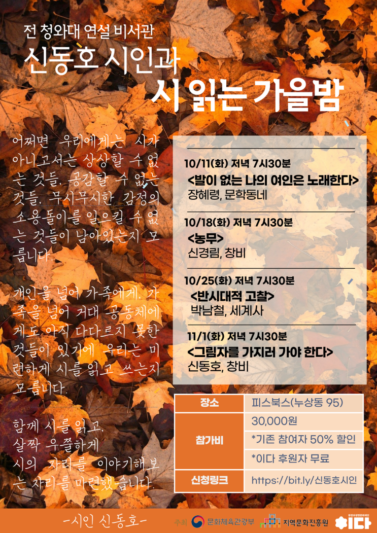 [모집]신동호 시인과 시 읽는 가을밤 _10/11(화) 시작