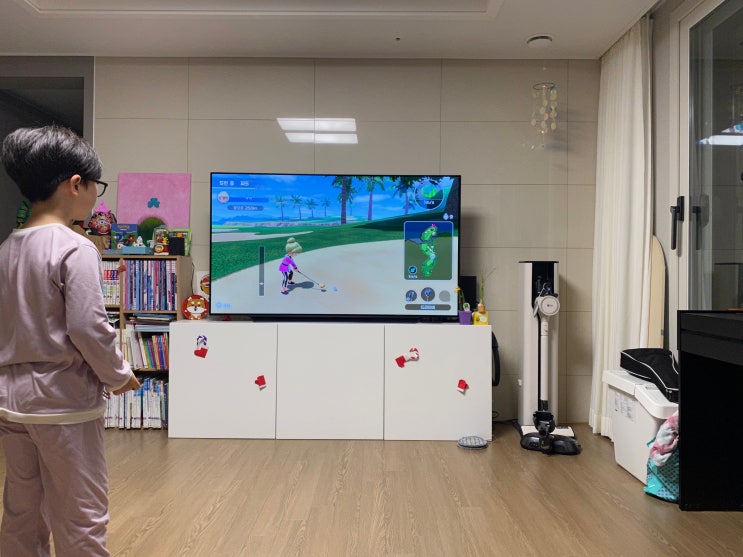 아이와 놀이_닌텐도 스포츠 올인원 키트 땀흘리며 즐기는 중