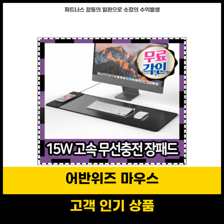 정말강추 어반위즈 15W 고속 무선 충전 게이밍 마우스 장패드 세트 오늘 소개할 제품은 단언컨데,, 그야말...