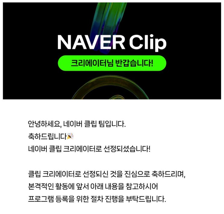 7월 말에 한 통 메일이 도착했고 네이버 클립 크리에이터로 선정되었다는 메일이었습니다. 그런가 보다 하...