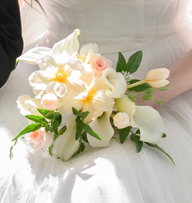 실크드레스와 어울리는 웨딩 본식 부케 추천 아뜰리에윤 가격