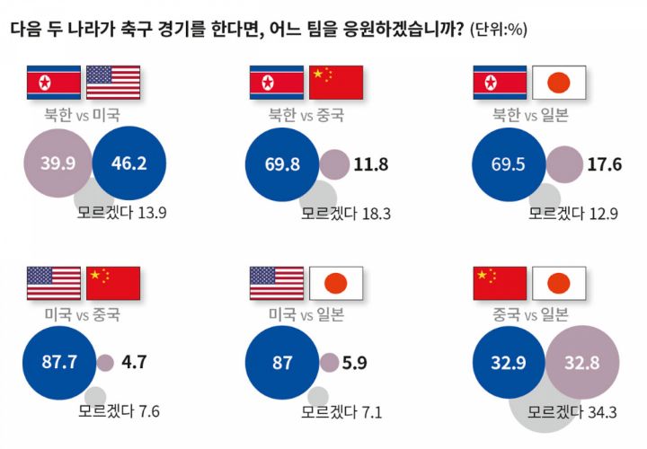 북한 일본 미국 중국이 축구를 하면 누구를 응원하시겠습니까?
