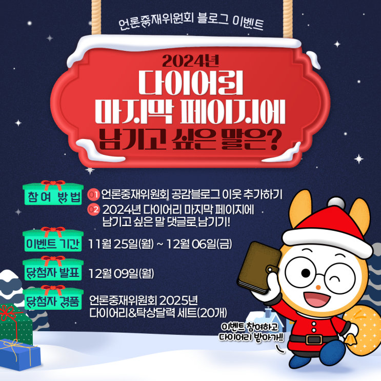 안녕하세요! 언론중재위원회 블로그 공감지기입니다. 벌써 12월이 코 앞! 2024년의 끝도 성큼 다가왔어요! ...