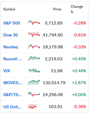 2024.11.04일 미국 주식 시장 헤드라인, 급등/급락 종목