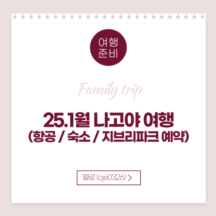안녕하세요. 멜로입니다. 고등학생인 딸을 위해 25년 1월 나고야 여행을 준비하고 있습니다. 저와 아이둘 ...