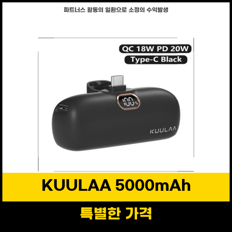 할인템 KUULAA 미니 보조배터리 5000mAh 고속충전 아이폰 샤오미 최적화된 선택 오늘 소개할 제품은...