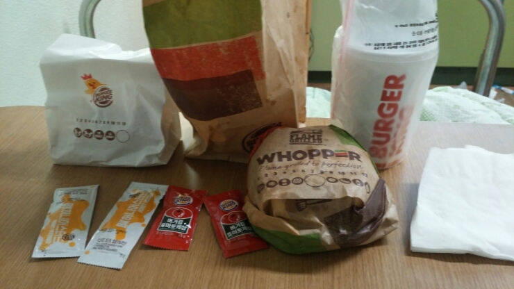 버거킹 햄버거 처음 먹어봤어요 오늘까지 병원에서 삼일째... 유안이가 수족구라서 밖에 나가는게 안되요 ...