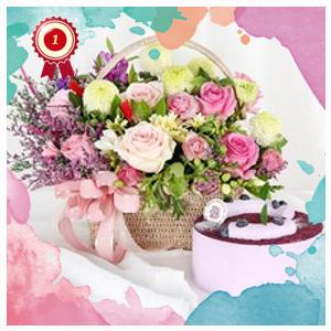 99플라워 (당일수령) 사랑의향기+케익 [ST-A1921] - 전국꽃배달서비스 기념일 봄 생일 케익 생화 꽃선물...