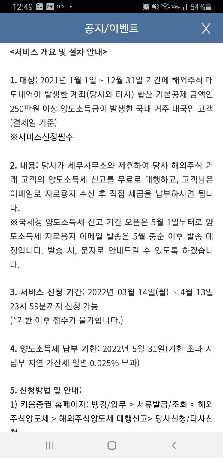 2022년 키움증권 해외주식 양도소득세 신고 무료 대행 신청방법