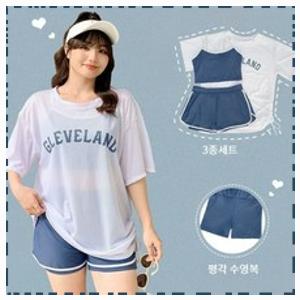 Modern Fashion 빅사이즈 체형커버 3종 세트 수영복 반바지 비치 워터파크, XL 62-65kg, 블루 화이트 ...
