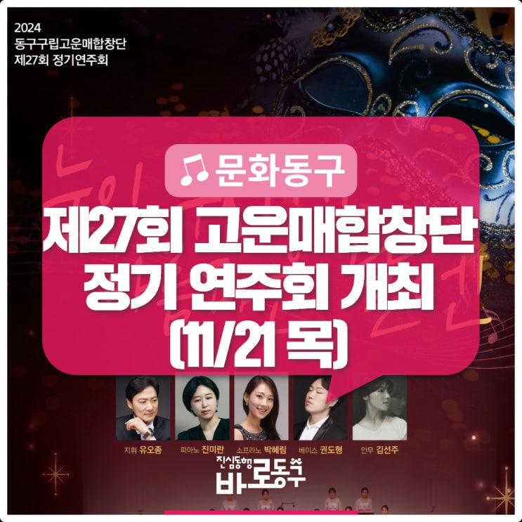 ?감미로운 노래 들으러 오세요? <제27회 동구 고운매합창단 정기연주회> 개최