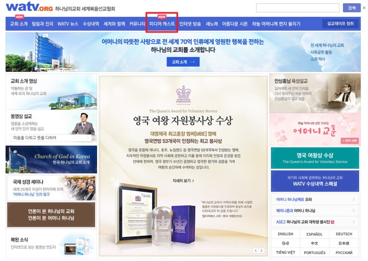 하나님의교회 홈페이지 "미디어캐스트" 추가등록!!