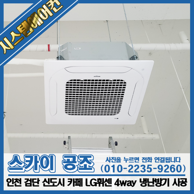 안녕하세요, 수도권 전문 에어컨 설치. 이전 스카이 공조입니다~ 오늘은 인천 검단 신도시의 카페에서 시공...