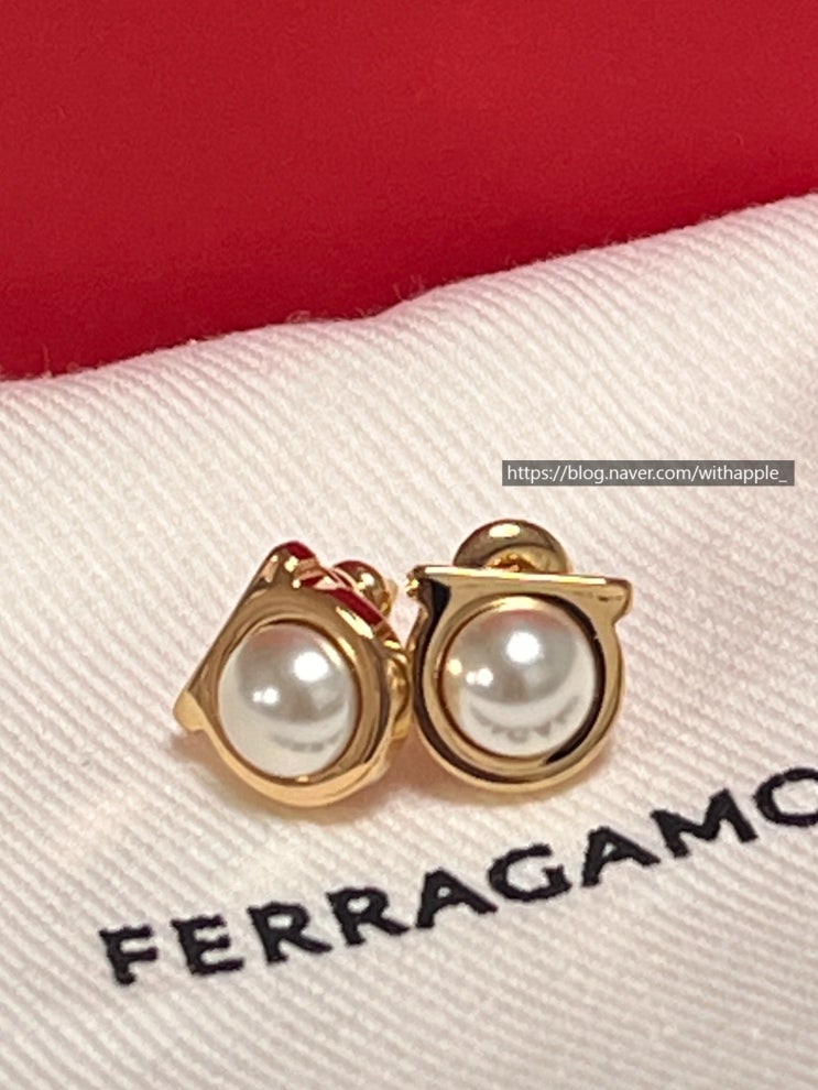 안녕하세요:) 이번에 친구들에게 선물로 페라가모 귀걸이를 선물 받았어요 이 제품은 페라가모 간치니 펄 ...