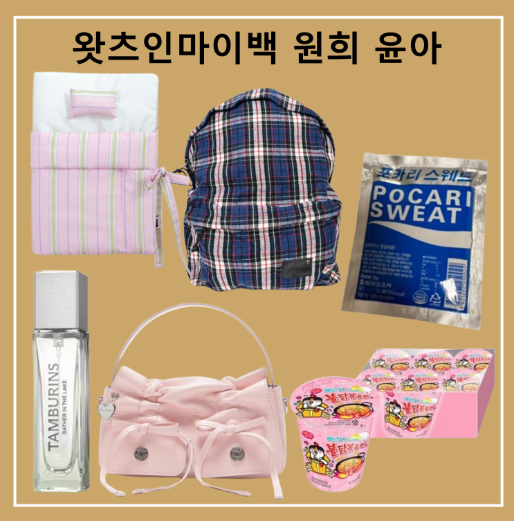 왓츠인마이백 원희 백팩 다이어리 불닭볶음면 포카리스웨트 분말 가루 윤아 숄더백 가방 향수 보그코리아