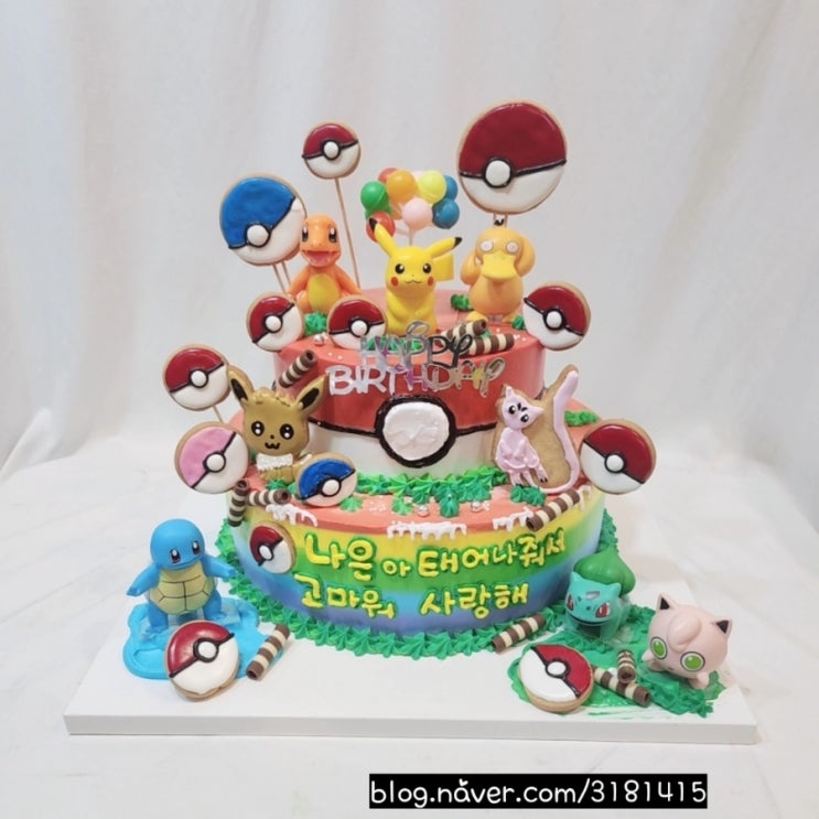 밑단5호 지름27cm 윗단2호 지름18cm으로 제작한 포캣몬케이크예요~ #포캣몬피규어와 #캐릭터아이싱쿠키 로 ...