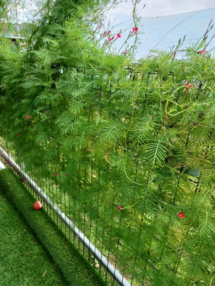 숙모네 담장 넝쿨?이 있다 얼핏보면 공작새 깃털같은게 만지면 보들보들하고 펜스를 하루가 다르게 꽉 채우...