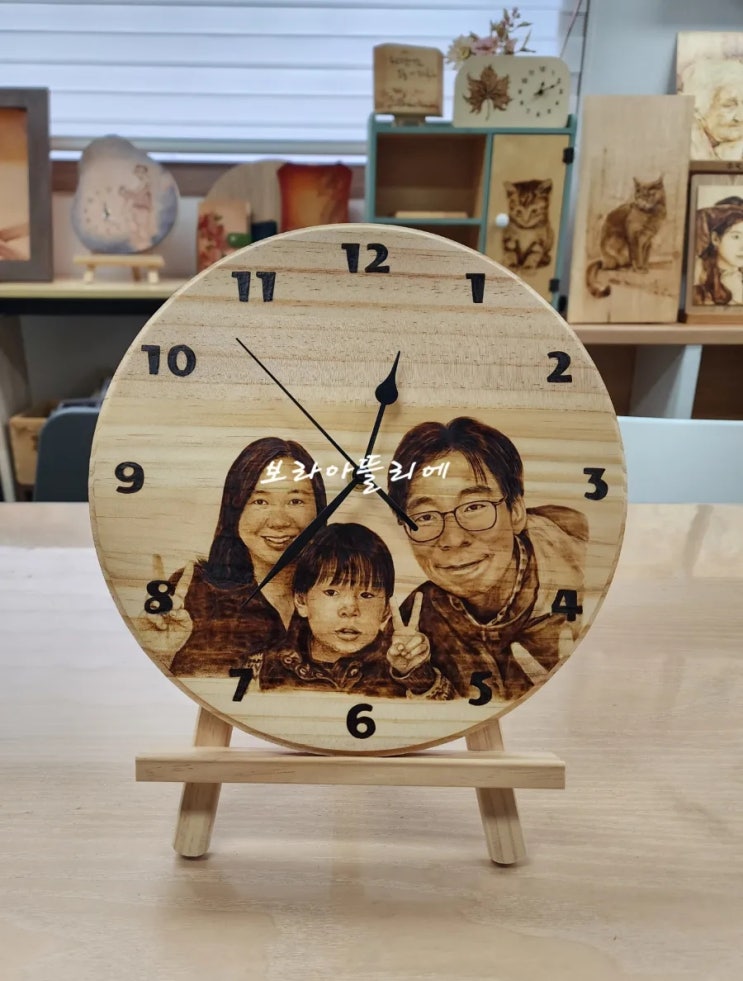우드버닝 원형 벽걸이 시계 특별한 선물이 될 수 있는 주문 제작 상품으로 집 인테리어 가족 액자처럼 걸어...