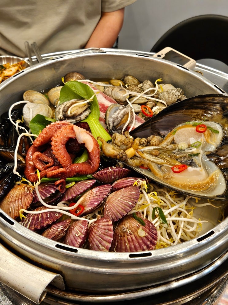 시흥 거북섬 웨이브파크 맛집 노을조개 거북섬 조개찜 새우미나리전
