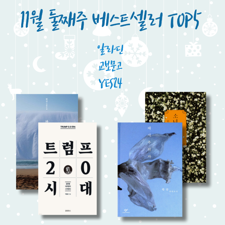 2024년 11월 둘째 주 베스트셀러 TOP 5 I 알라딘 I 교보문고 I YES24 I 베스트셀러 순위 소개
