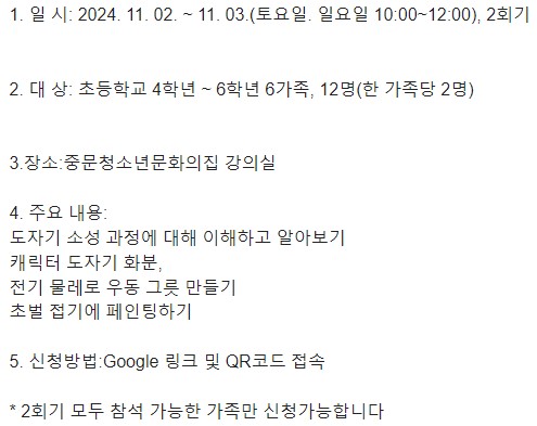 중문청소년문화의집 엄빠랑 생활 도자기 프로그램 참가 가족 모집