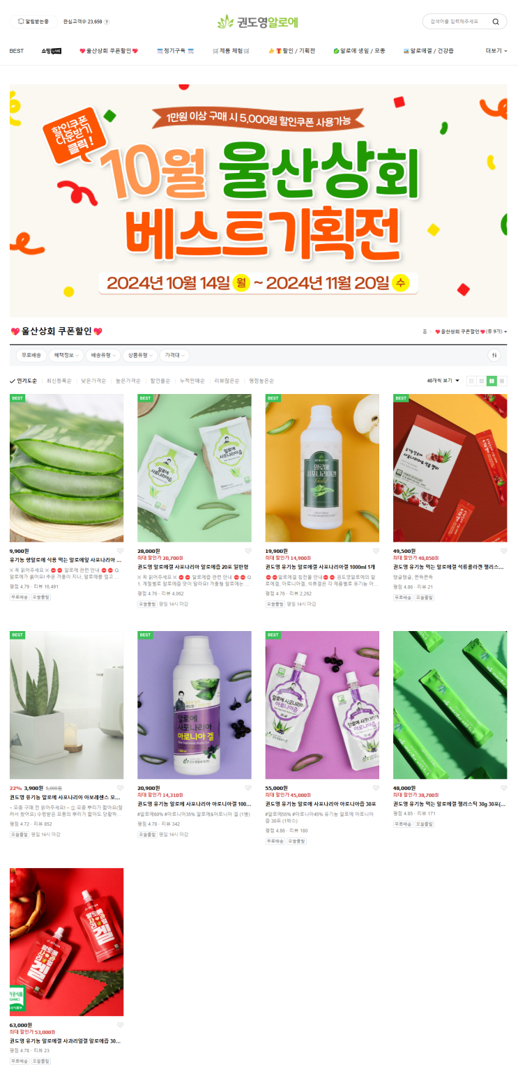 [권도영알로에] 울산상회 네이버쇼핑 만원 구매 시 5,000원 할인 쿠폰 발급방법!?