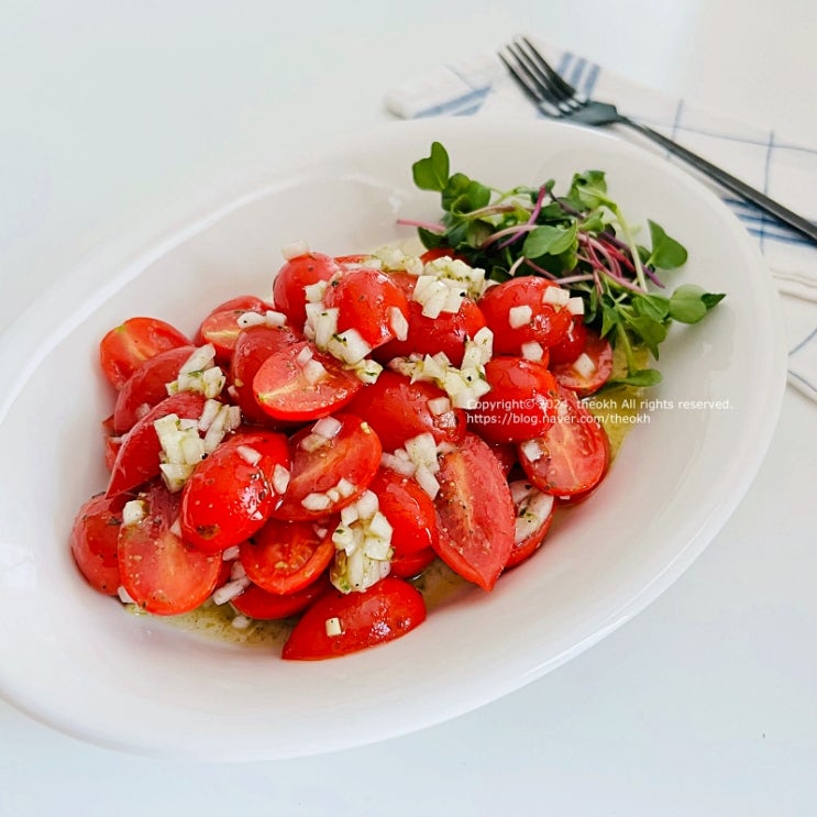 최애 샐러드 중 하나인 방울토마토 마리네이드 레시피예요. 넉넉하게 만들어 두면 피자나 파스타 등에 사이...