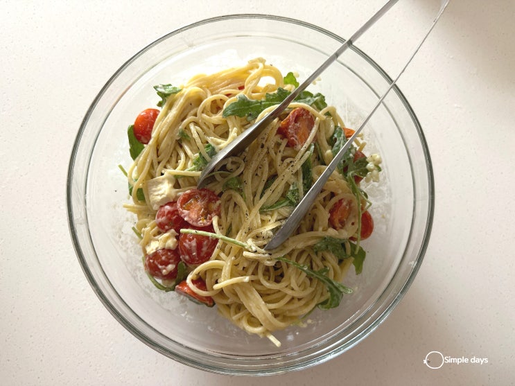 꾸덕한 브리치즈 루꼴라 파스타 방울토마토랑 마늘이 잘어울려