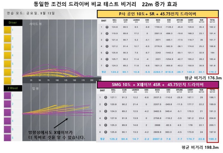 X 웨이브 샤프트 동일 조건에서 비거리 22m 증가 놀라운 효과 -- 60대 시니어 골퍼 비교시타 결과.