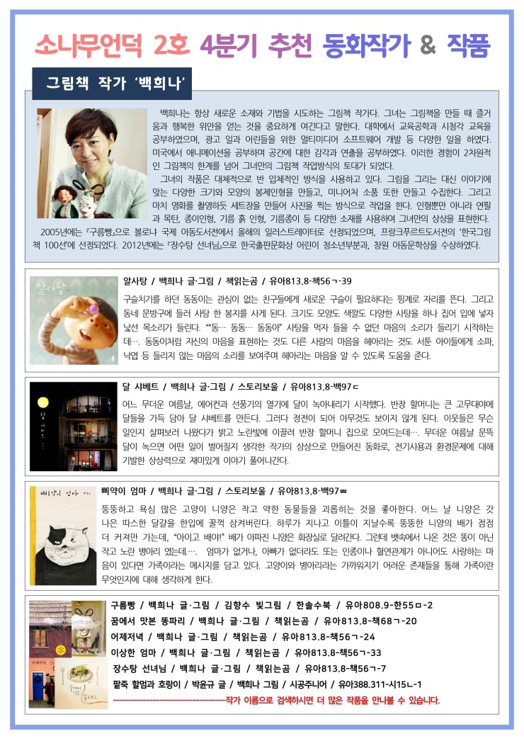 2017년 4분기 추천 그림책 작가 : 백희나