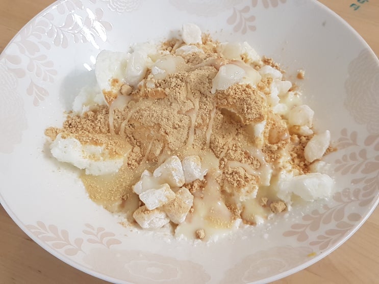 며칠전 한살림 가서 볶은 콩가루를 사왔당ㅋ 얼마전에 설빙을 갔는데 인절미빙수를 고남매가 넘나 잘먹는것...