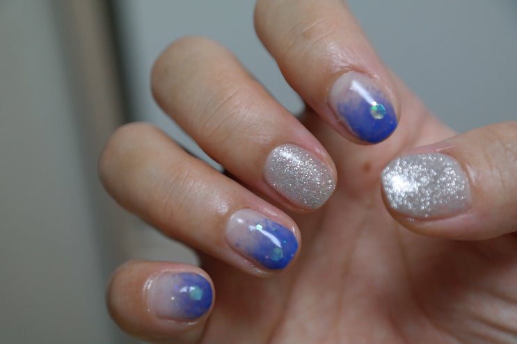 일주일동안 손톱 쉬었으니 다시 또 네일을 ㅎㅎ 이번에도 풀콧보다 더 쉬운 #그라데이션네일 을 했어요 메...