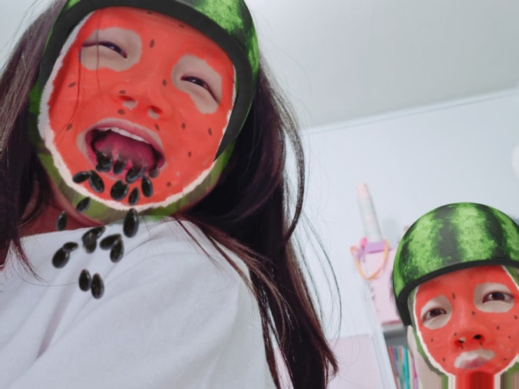 수박킬러 딸님ㅋ 사진도 수박으로 찍어놨네ㅋㅋ 신랑 표정ㅋㅋ