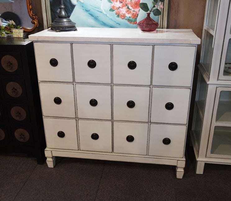소장 가치 높은 엔틱 인테리어 아이템, 화이트 사이드 체스트 엔틱 수납장