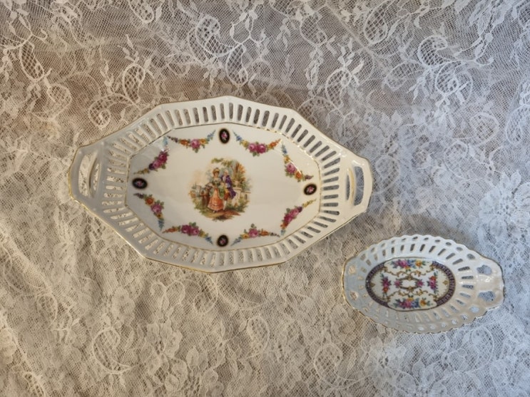 made in Germany 투각 오벌형 플레이트 2점이예요~ 투각상태와 핸드페인팅 상태 디테일하면서 컨디션 좋아...