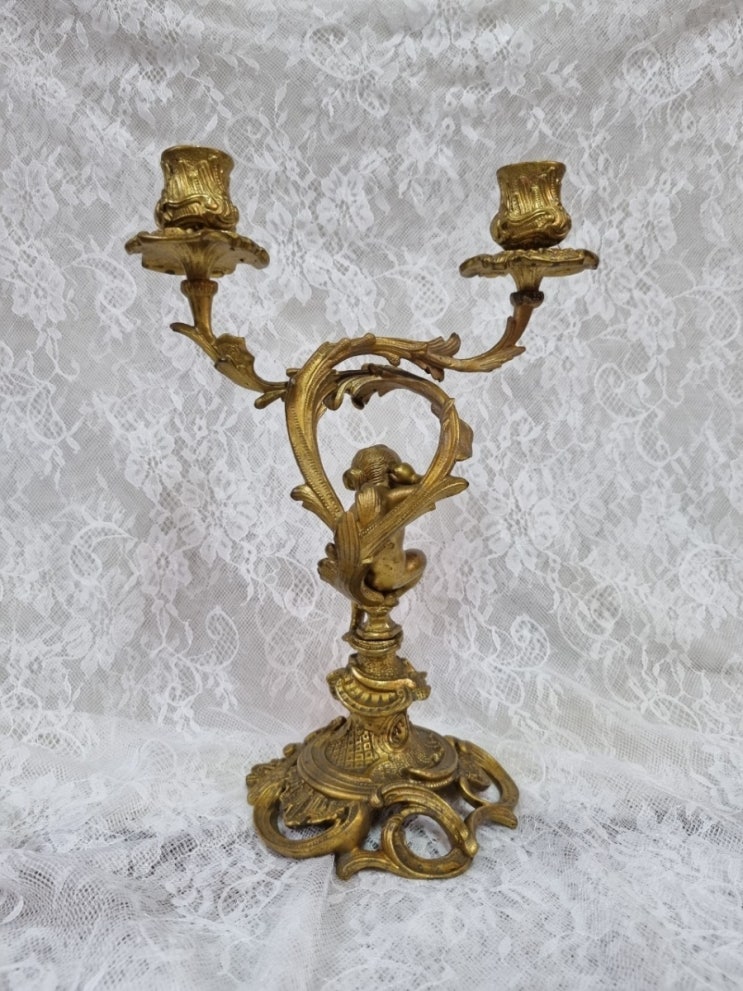 여자 아기 천사가 앉아있는 귀한 2구 촛대예요~ 150년이상의 세월에 비해 골드오물루 보존상태 아주좋구요 ...
