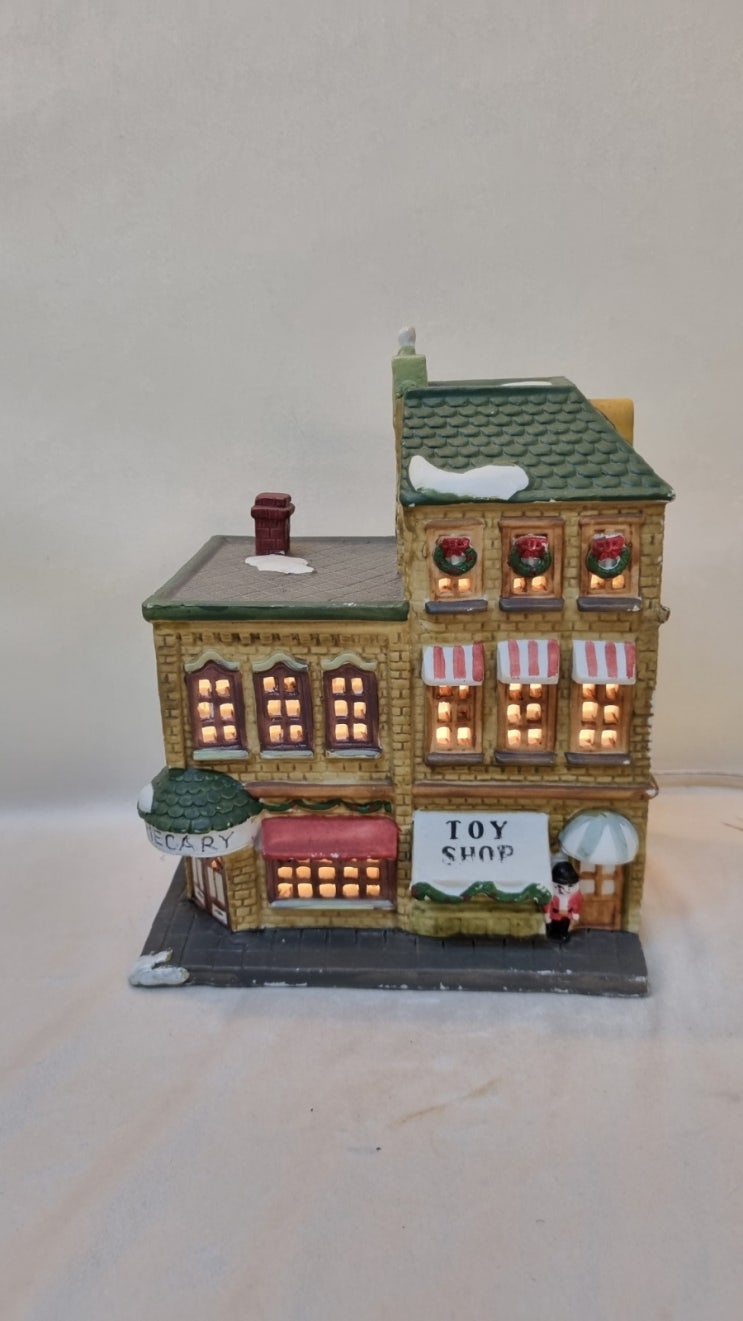 [울산부산엔틱/체럽엔틱] 영국의 크리스마스와 겨울을 느끼게 하는 코티지 시리즈 이층장난감 상점 코디지 포슬린 램프예요~