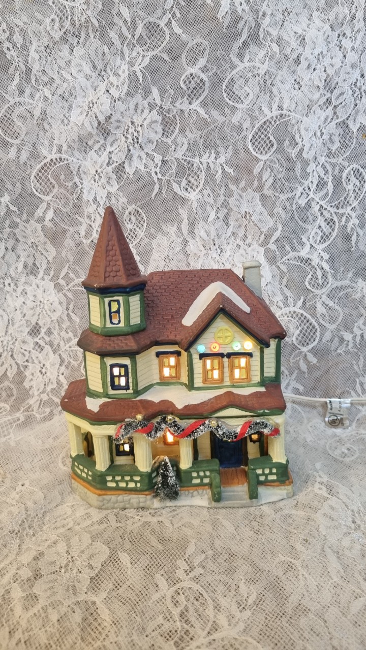 [울산부산엔틱/체럽엔틱]영국의 크리마스를 느끼게 하는 코티지 시리즈 이층하우스 포슬린 램프예요~