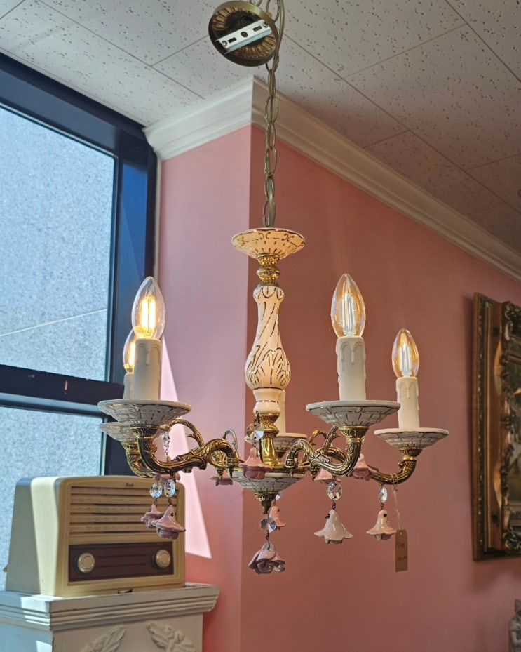 ?❤️? 프랑스 포쉐린 브론즈 5구 샹들리에 화이트에 골드가 들어가서 화사하니 넘 예쁜아이네요. 사...