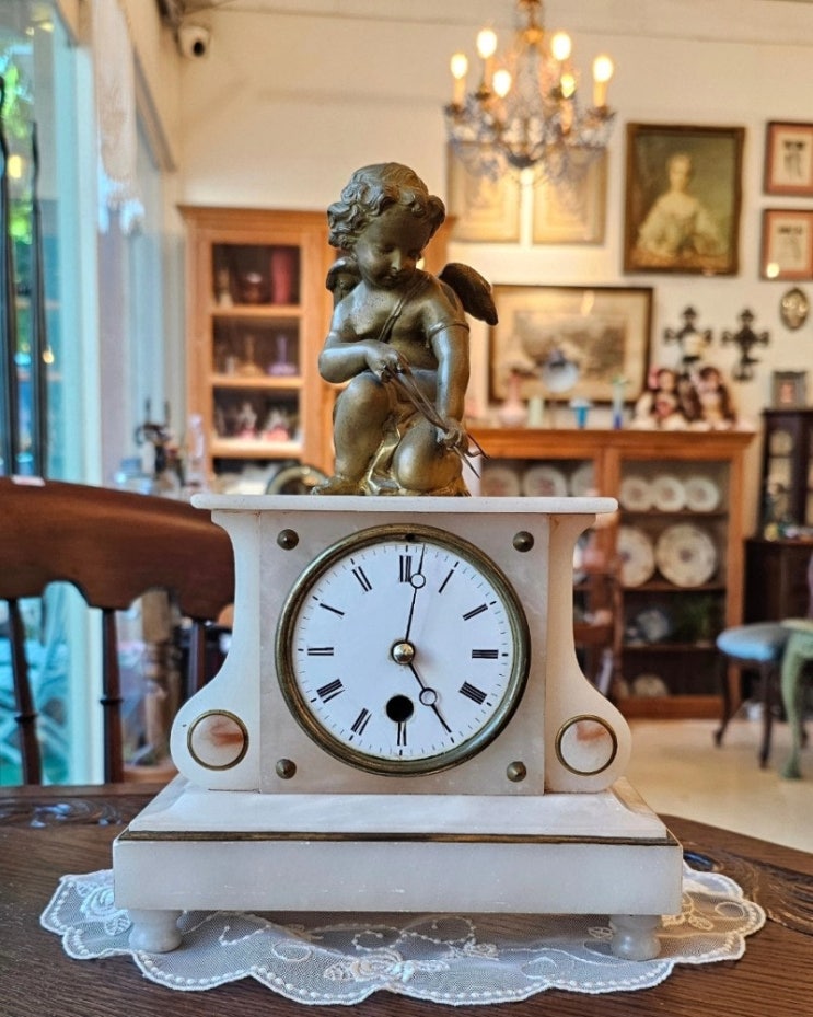 ❤️?? 프랑스 엔틱 탁상용시계 대리석 황동 천사 탁상용 시계 20세기 초에 만들어진시계입니다. 가...