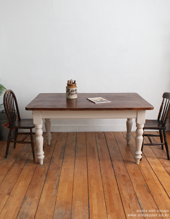 올드빈티지 쉐비시크 파인테이블 묵직한 파인우드에 화이트 쉐비시크로 마감된 파인테이블. 화이트와 고급...